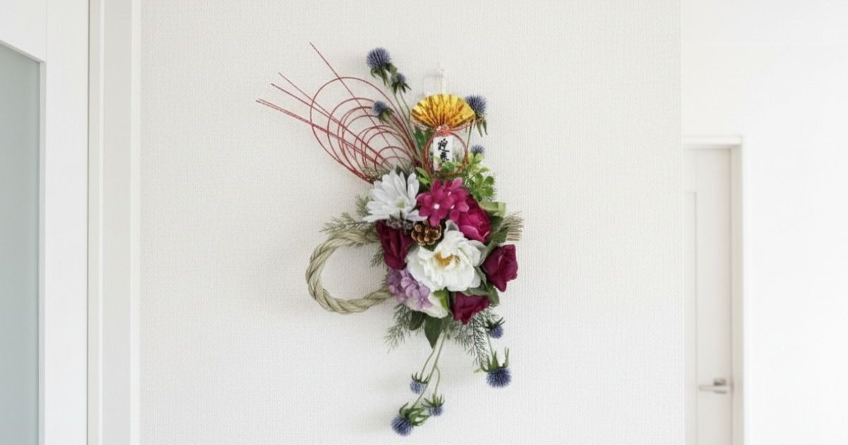 稲わらで作った土台に松や水引などの飾りをあしらった、日本伝統的な壁飾りです。