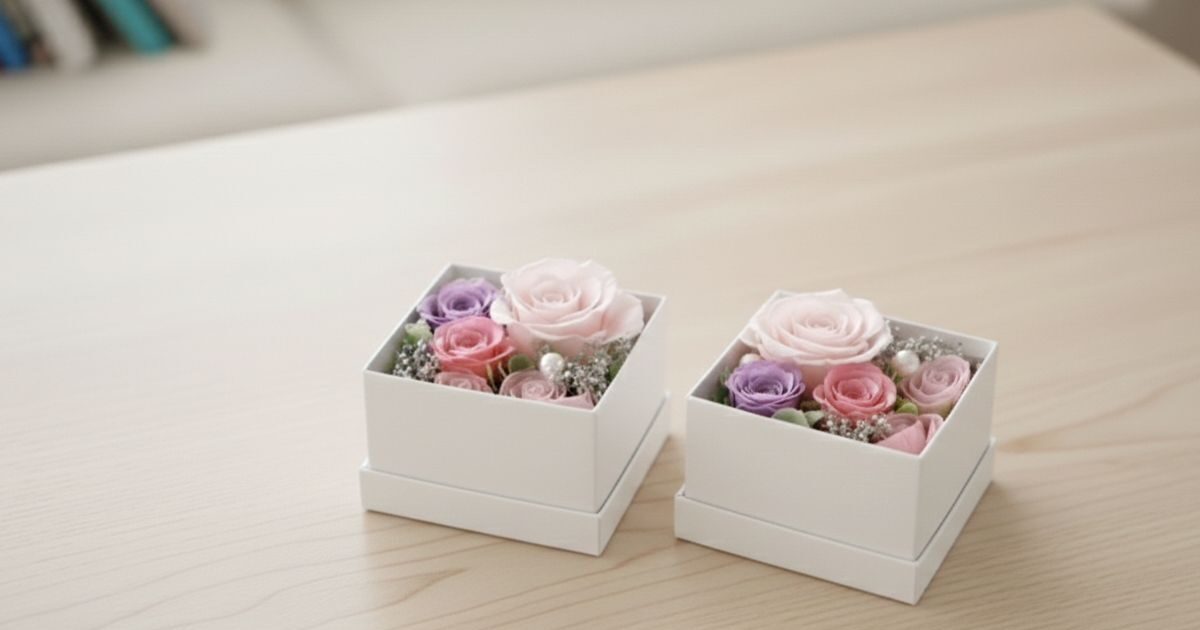 生花・ドライ・プリザーブドなど素材の特徴を知っておけば、飾りたい期間やお手入れのしやすさに合わせて素材を選べます。
